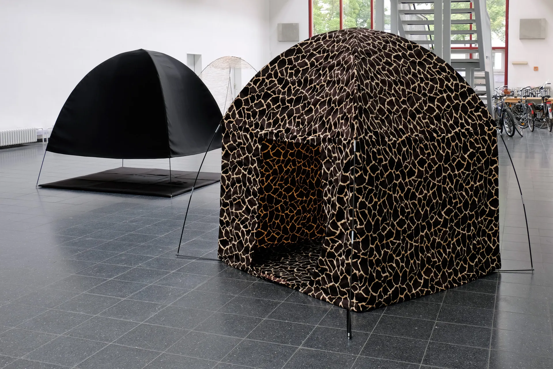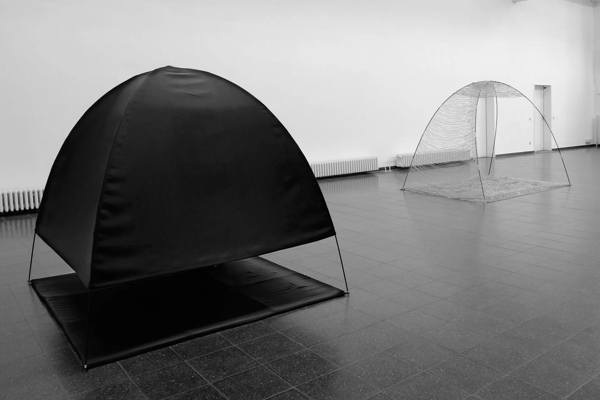 Zeltarbeit: Verdunkelungsstoff, Zeltgestänge, Gurtband, Matte mit Knöpfen, Ösen