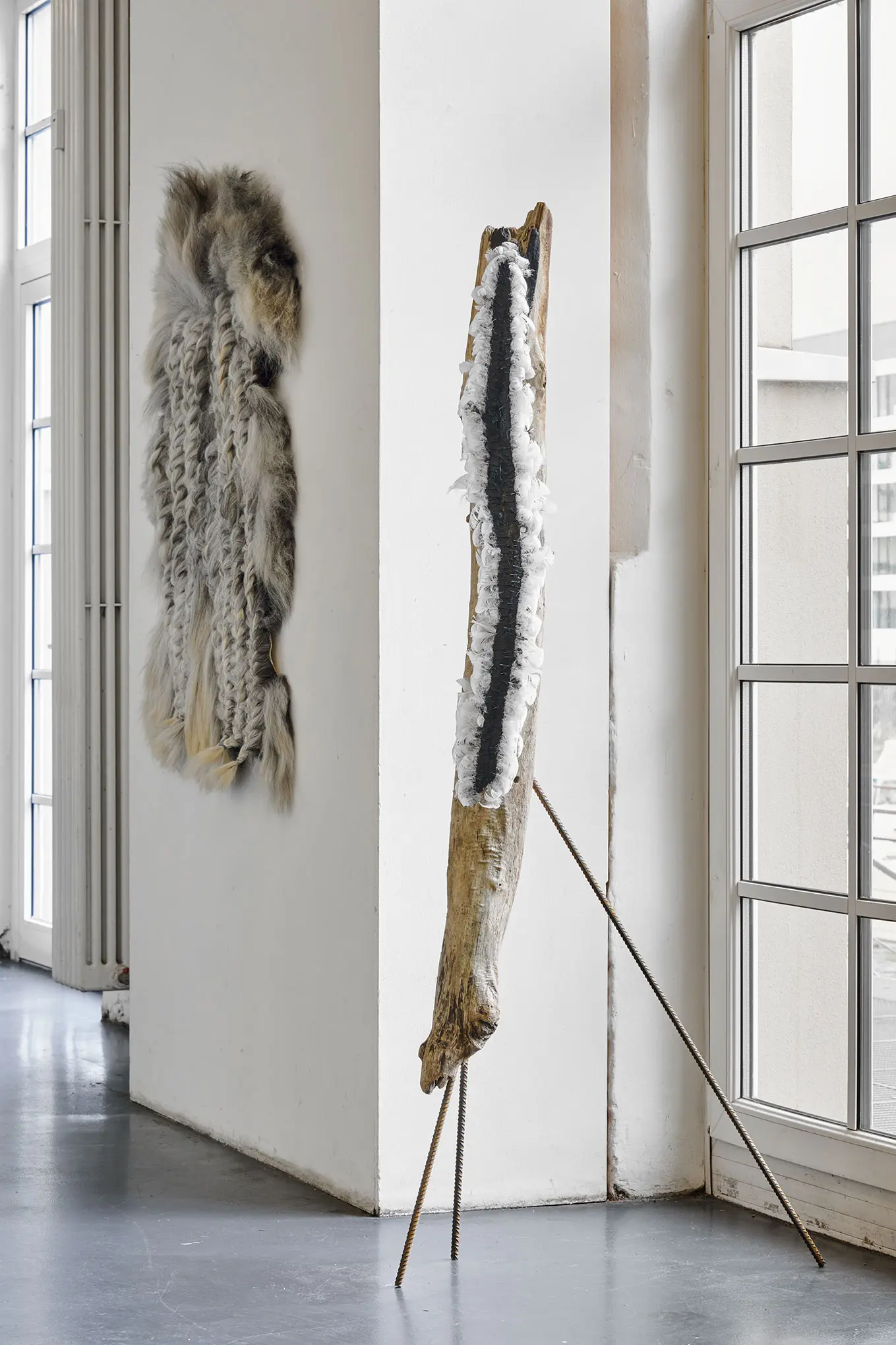 Treibholz geflämmt, Moniereisen, Federn, Lack